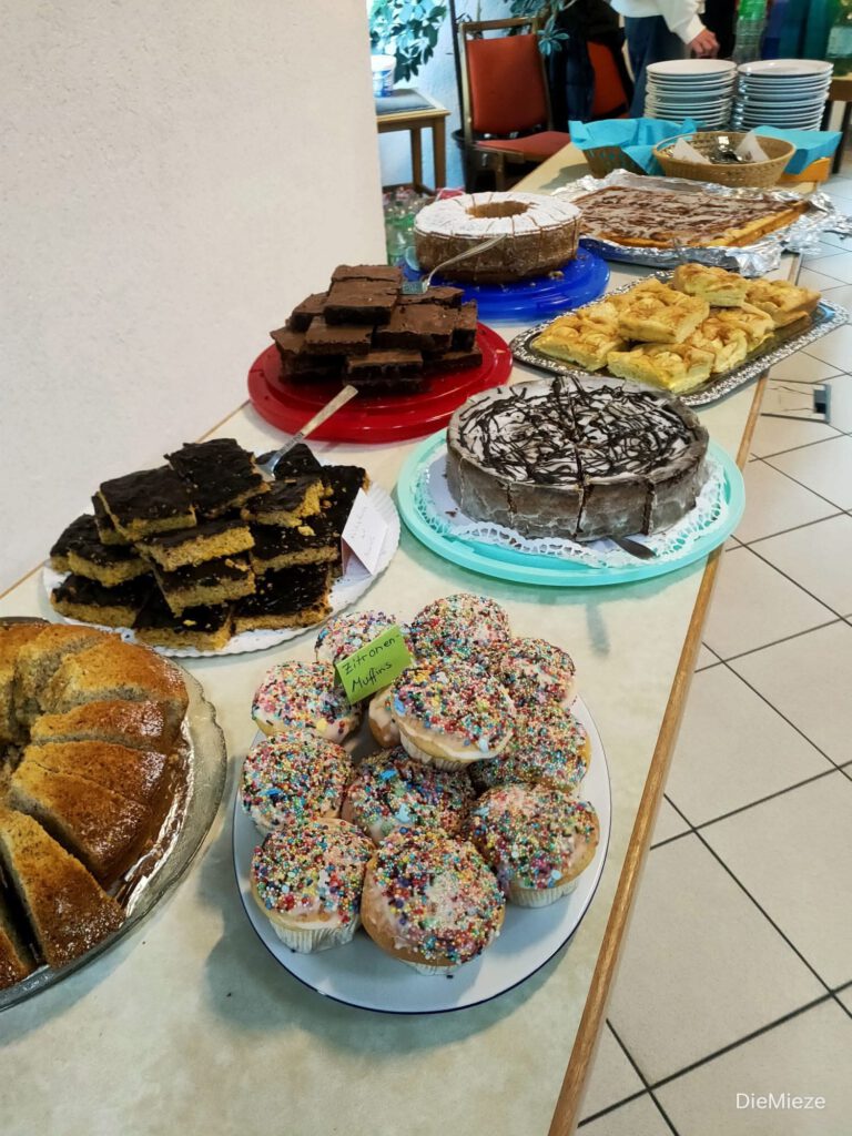- Erbsensuppe, vegetarische Brokkolicremesuppe, Kaffee, Muzen und viele verschiedene Kuchen