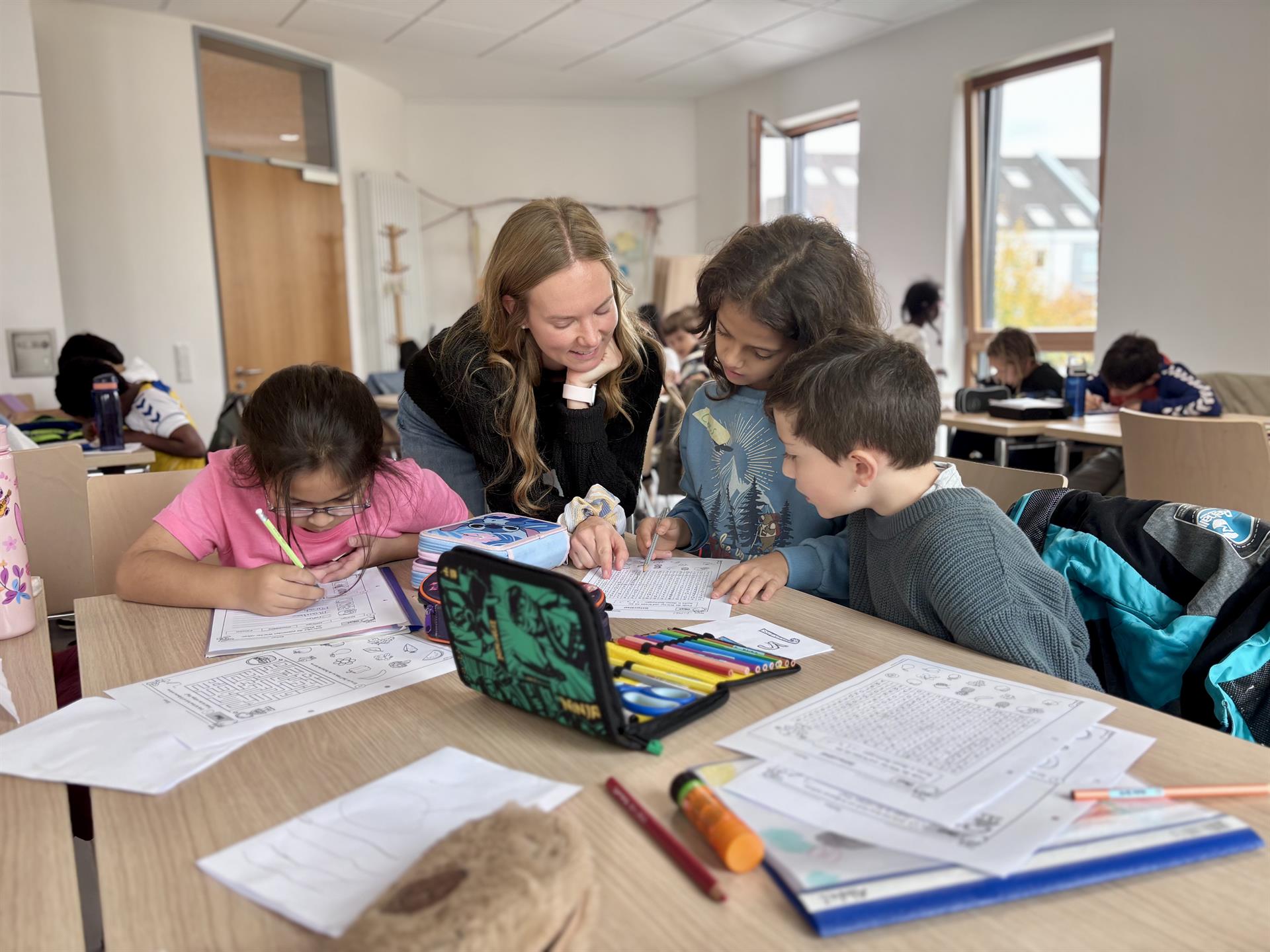 Beitragsbild: Im Bergisch Gladbacher Hermann-Löns-Forum verbesserten Kinder aus drei Grundschulen mit ihren Sprachlernbegleiterinnen ihre Deutschkenntnisse. Bildquelle: Alexander Schiele/Rheinisch-Bergischer Kreis