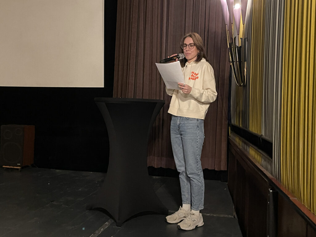 Vor Beginn der Filmvorführung sprach Vanessa Jahn von der Partei Die Linke – Wermelskirchen einleitende Worte.