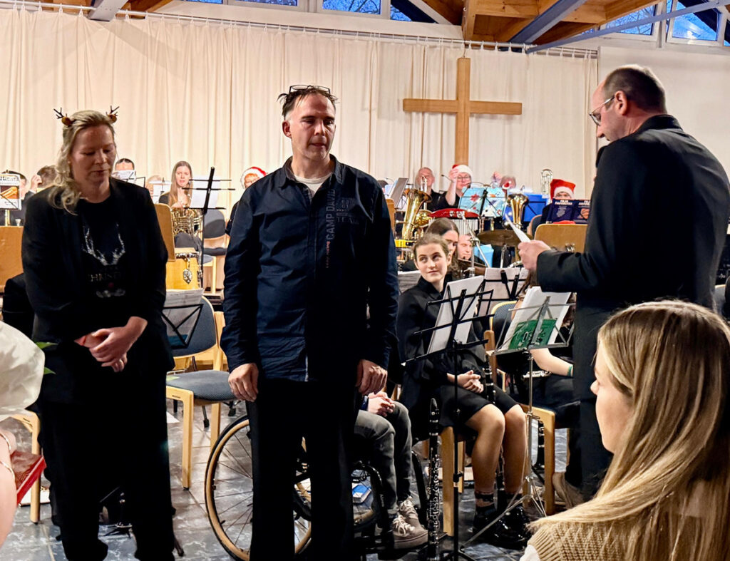 Zum Abschluss ergriff der zweite Vorsitzende, Andreas Nutz, das Wort. In herzlichen und wertschätzenden Sätzen lobte er „die beiden Kraftwerke“ des Orchesters – Steffi Groß und Ralf von Tegelen – und dankte ihnen für ihren unermüdlichen Einsatz. Mit einem Augenzwinkern gab er den humorvollen Rat, bei all der musikalischen Energie vielleicht gelegentlich eine professionelle Untersuchung in Betracht zu ziehen. Anschließend überreichte er beiden ihre wohlverdienten Geschenke.