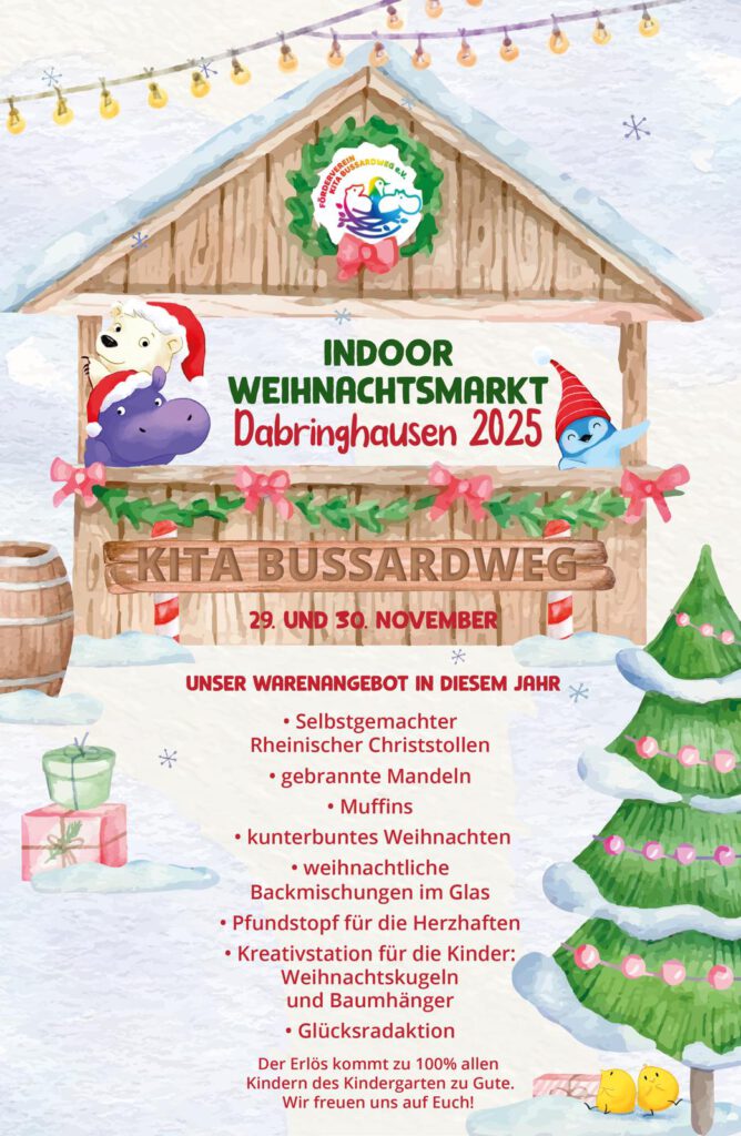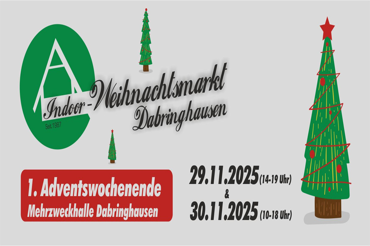 Die Öff­nungs­zei­ten des Indoor- Weih­nachts­mark­tes in Dabring­hau­sen sind: