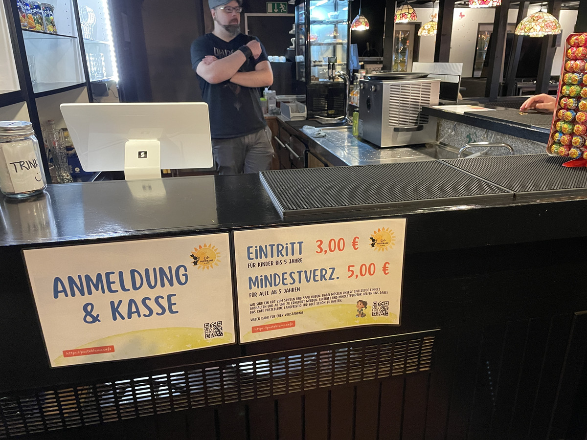Neu im Angebot sind unter anderem kleine Snacks, Kaffeevarianten für Kinder wie „Babyccino“ und zusätzliche Wünsche aus der Community. Für Kinder zwischen ca. 6 Monaten und 5 Jahren wird ein kleiner Eintritt erhoben (3,-€), um Spielmaterial regelmäßig erneuern zu können; ab 5 Jahren und für Eltern gilt ein moderater Mindestverzehr (5,-€) – üblich für Eltern-Kind-Cafés.
