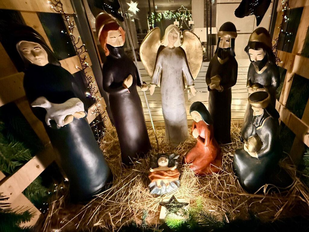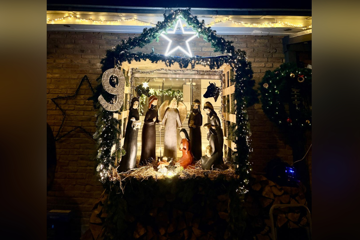 Nach einem kurzen Hinweis über Mikrofon folgte – diesmal ganz ohne Verstärkung – die Geschichte des Weihnachtssterns: ein Zeichen für Licht und Hoffnung, ganz so wie unsere Adventsfenster in Dabringhausen. Besonders passend, denn das heutige Fenster stellte den Stall von Bethlehem nach der Geburt Christi dar und setzte die Geschichte damit wunderschön in Szene.