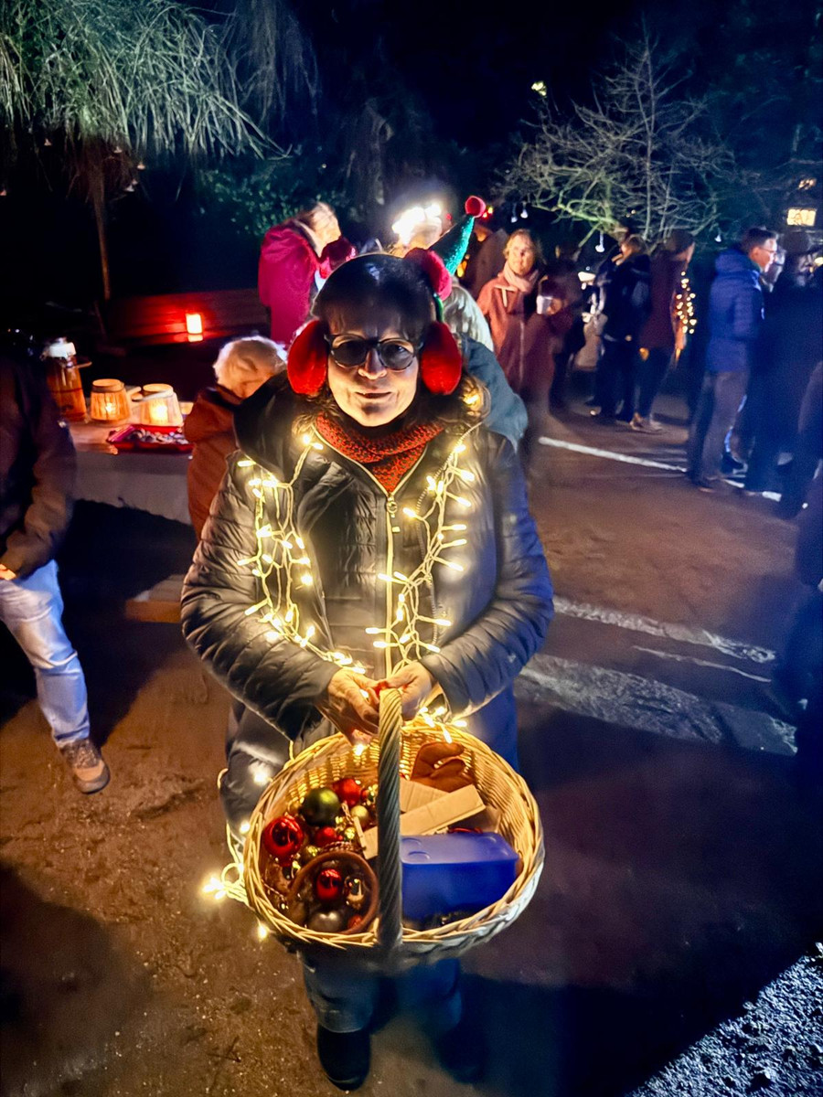 Der Frauenverein hat eingeladen – zu einem Adventsfenster der besonderen Art. Also Wetter ignorieren, warm anziehen und los. Das Dorf ist da. Der Park ist gefüllt. Laute Musik, Lachen, Begegnungen.