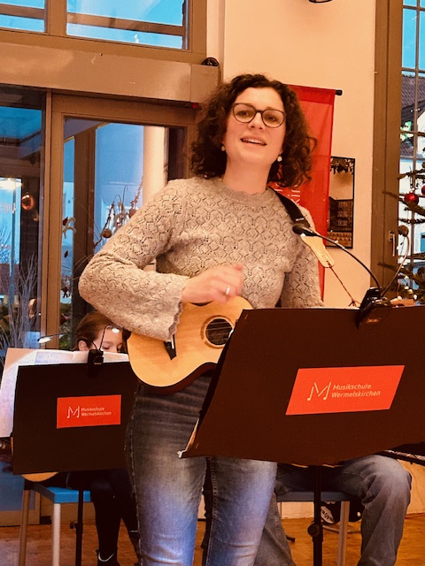 Zwischen den Ensembles erfreute Musikschullehrerin Denisa Blömker mit ihrem klaren Sopran und der Ukulele die Senioren mit stimmungsvollen Weihnachtsliedern und forderte zum Mitsingen auf, dem viele gerne nachkamen.