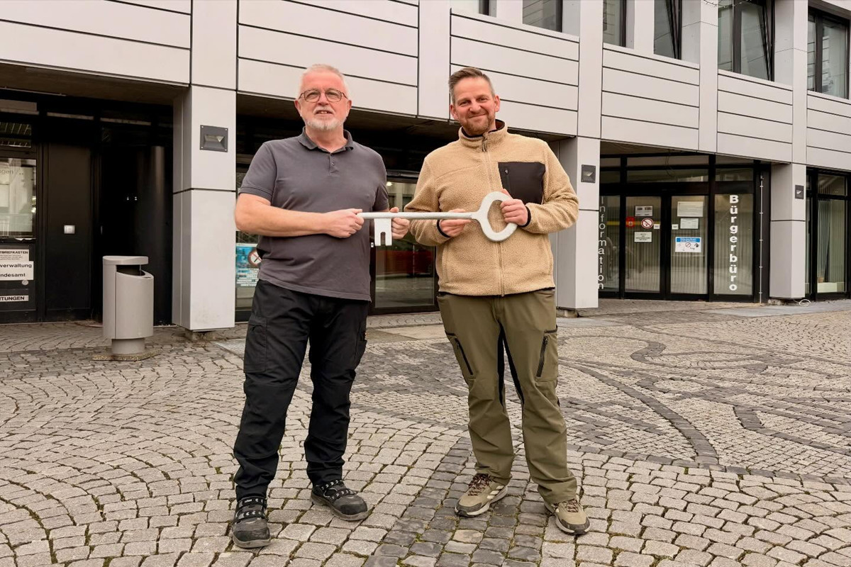 Wir sind dann mal weg. Die Stadt­ver­wal­tung geht in die Betriebs­fe­ri­en: Unse­re guten Geis­ter, unse­re Haus­meis­ter Micha­el Schi­wy und Tho­mas Madel (rechts), haben die Türen abge­schlos­sen. Denn: Zwi­schen den Fei­er­ta­gen sind das Rat­haus und die Außen­stel­len geschlos­sen.