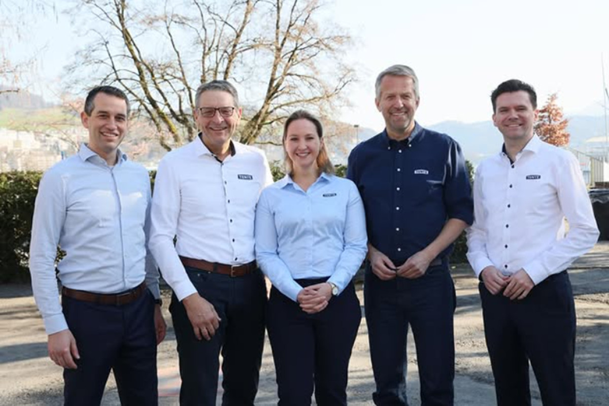 Auf dem Foto seht Ihr die Führungsspitze von Tente: André Distel (CEO & Managing Director TENTE International GmbH), Roland Dörner (Managing Director TENTE-Rollen GmbH), Alexa Engels (Managing Director TENTE Räder und Rollen GmbH), Peter Fricke (Chairman TENTE GmbH & Co. KG), Thomas Demmerling (CFO & Managing Director TENTE International GmbH (von links)