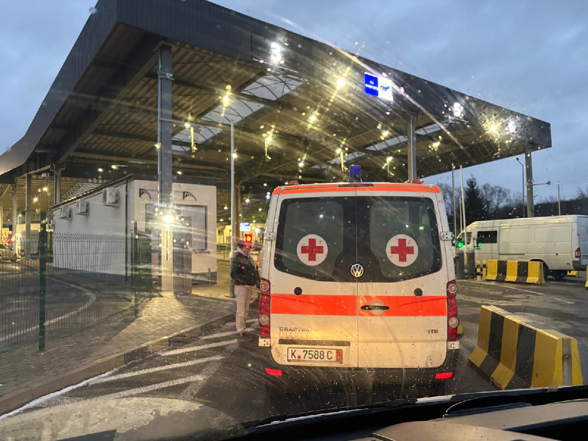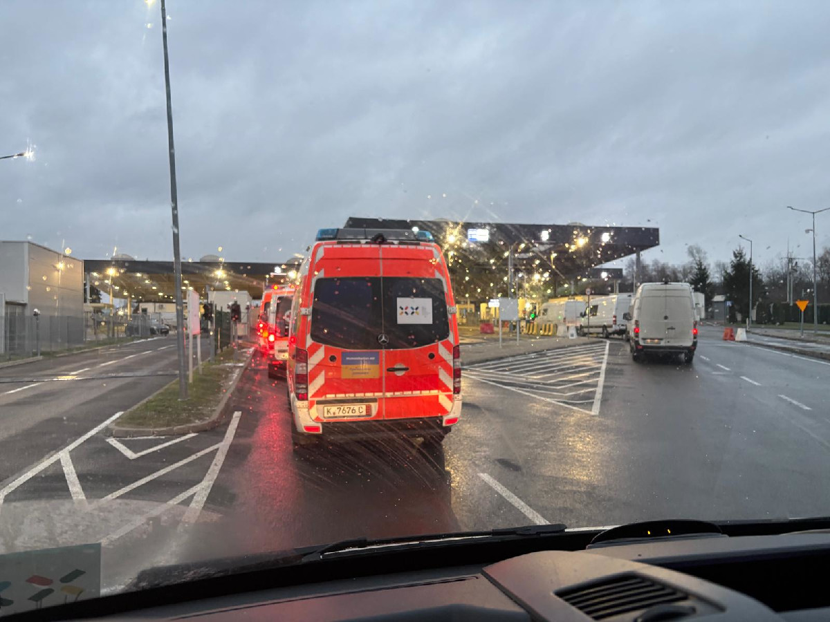 End­lich die Nach­richt von Lin­da: Noch 20 Kilo­me­ter bis zur ukrai­ni­schen Gren­ze. In der Kom­mu­ni­ka­ti­on zwi­schen den Fah­rern ist die wach­sen­de Anspan­nung deut­lich spür­bar – selbst bei den erfah­re­nen Fahr­zeug­über­füh­rern. Alle wis­sen: Es kann vie­le Stun­den dau­ern, bis der pol­ni­sche Zoll die Kon­trol­le abschließt. Beim letz­ten Ein­satz war­te­te das Team mehr als 13 Stun­den.