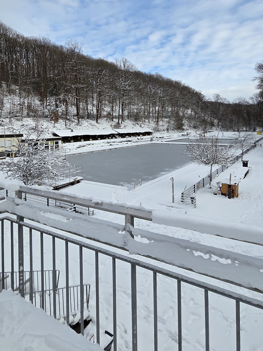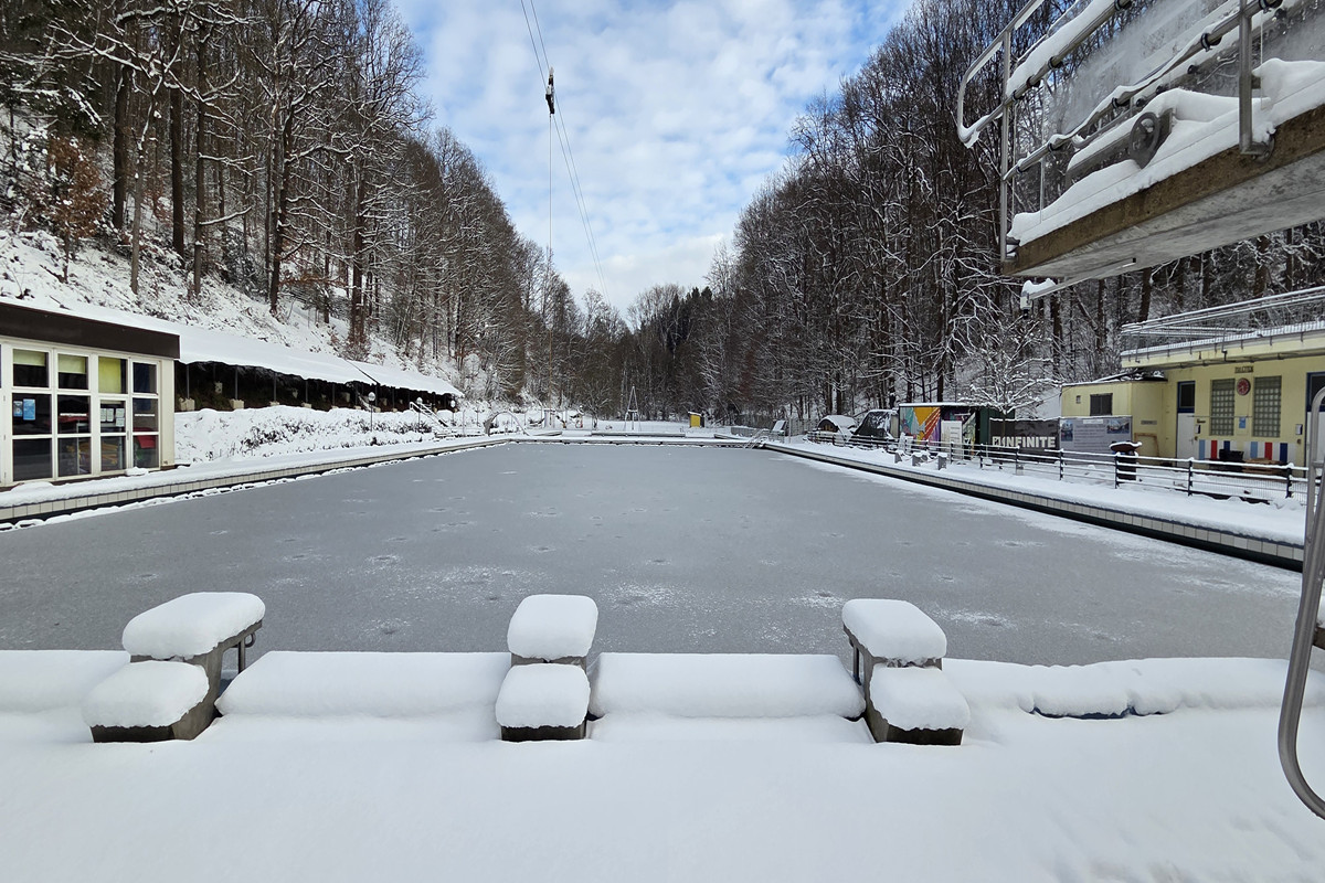 “Wie eine Schönheit im Winterschlaf liegt aktuell des Freibad Dabringhausen im Linnefetal. Schneebedeckt und voll unberührter Winterlandschaft wartet die Anlage auf das Aufwecken im Frühjahr. Bis zum Saisonstart im Juli werden alle Spuren des Winters beseitigt sein, noch gilt es daher die Ruhe im Tal zu genießen.” Mit diesen Worten schickt uns Matthias Nippel, 2. Vorsitzender des Fördervereins Freibad Dabringhausen e.V. (FFD), die vorliegenden Winterimpressionen.
