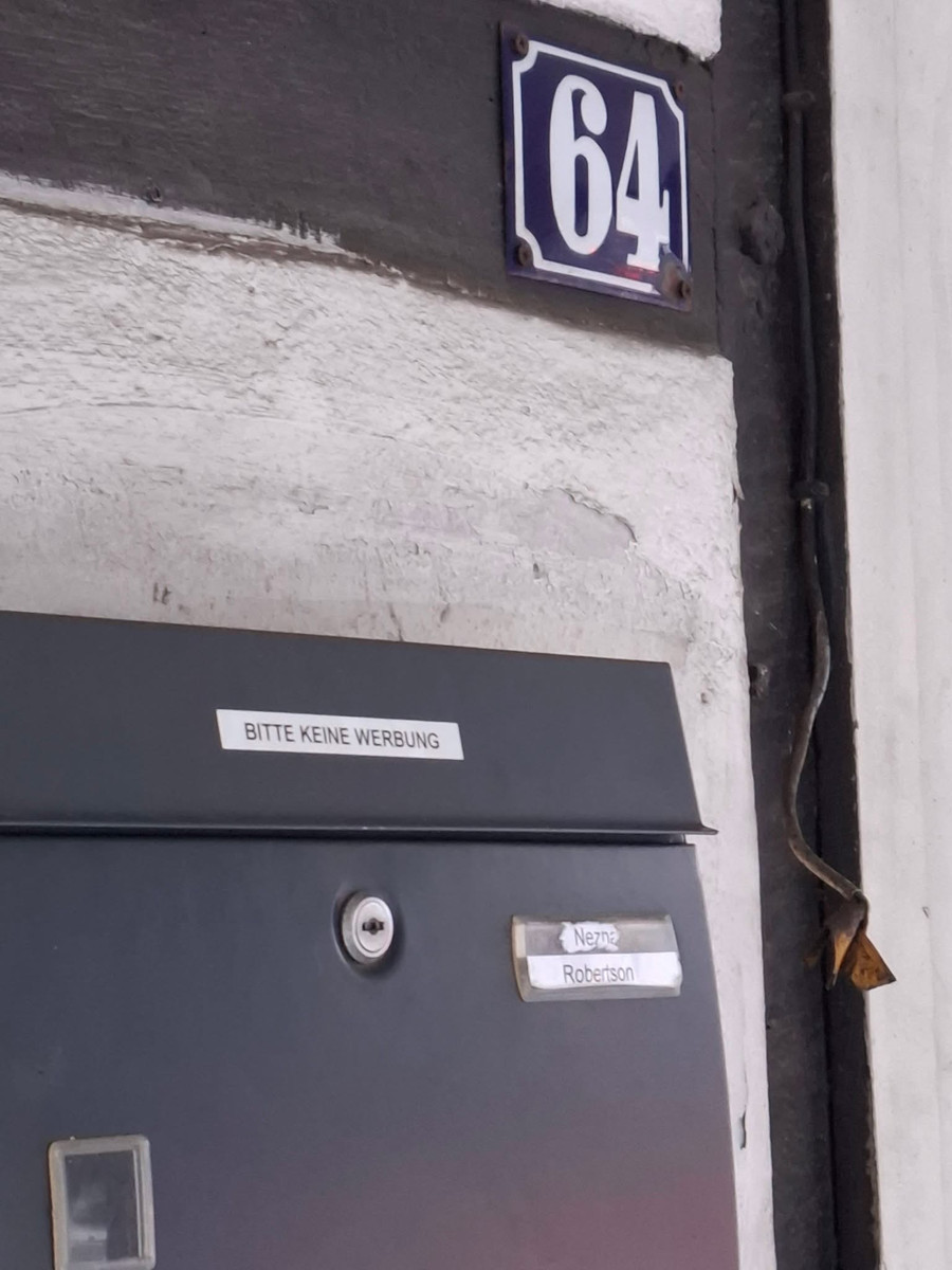 Junger Mann, Herr Robertson, kommt nach Hause. Darf ich bei Ihnen mal auf Toilette? Ja klar. Ich mit in die 1. Etage in dem Schieferhaus wo früher die Raucherkneipe in Fettehenne [seit Jahren zu] war.