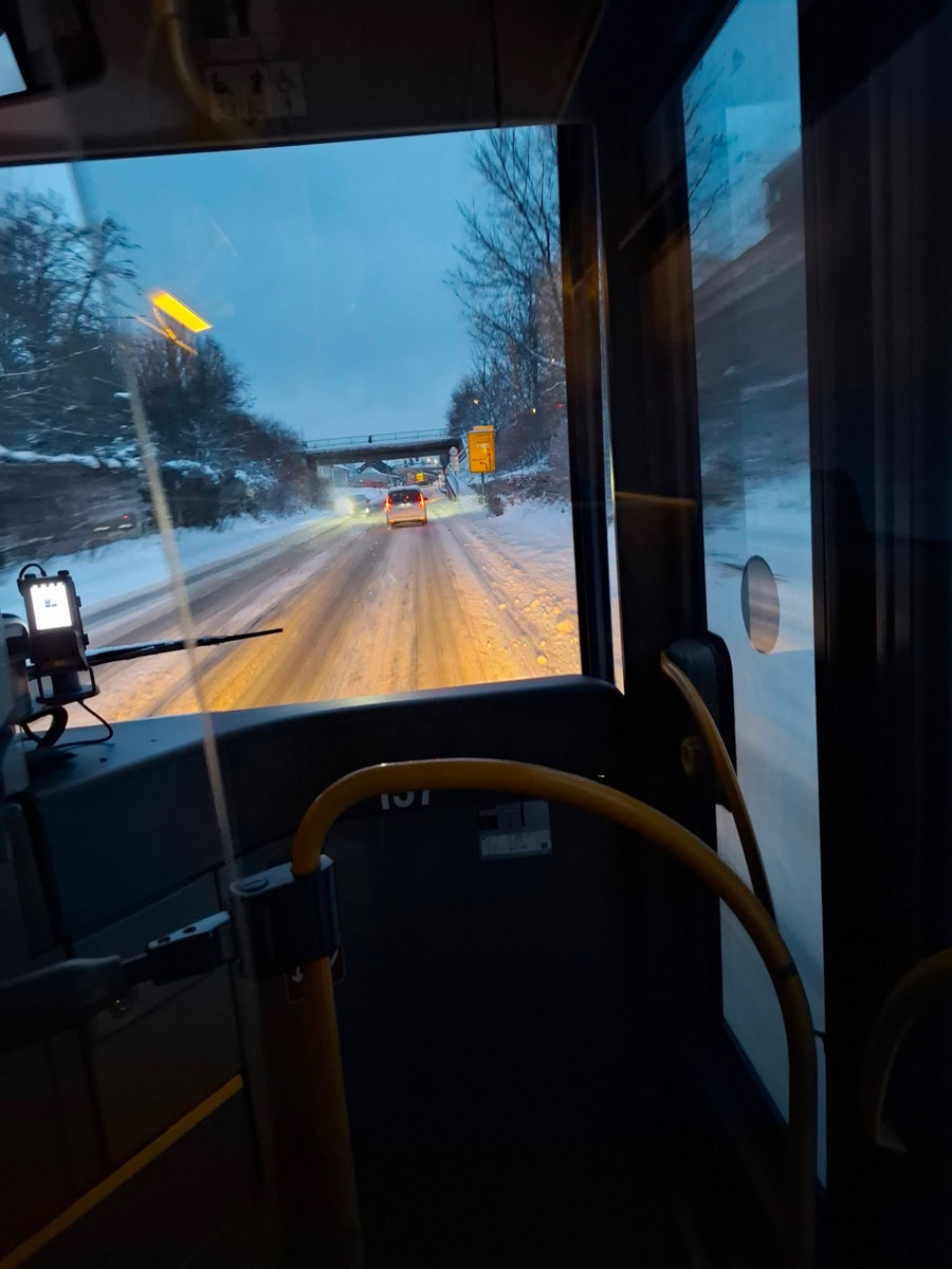 Taxi abgesagt, Hotel storniert. Dieser Busfahrer sagt, er wolle bis zur RVK noch kommen. Da stehe sein Auto. Der Verkehr wird weniger.