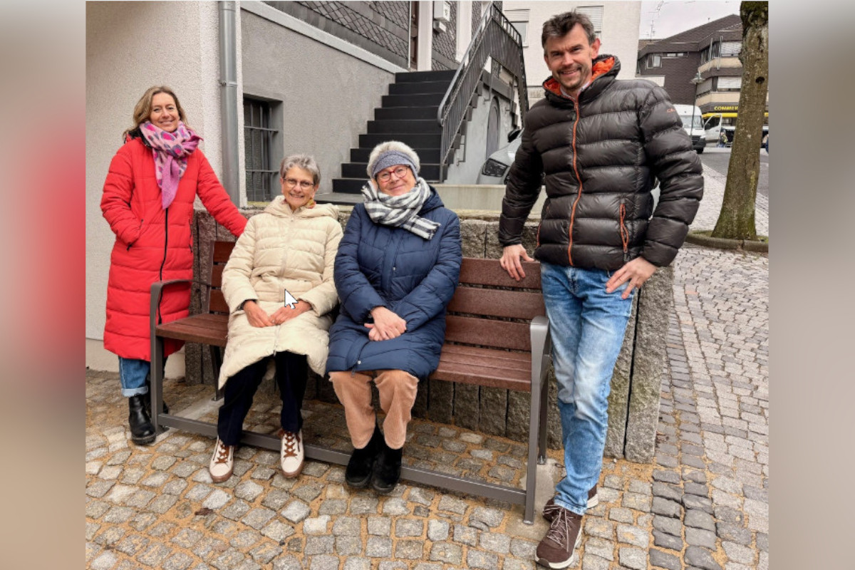 Ein besonderer Dank geht auch an die Familie Lux, die so begeistert von der Idee der Seniorenbank waren, dass sie einen Teil ihres Grundstücks zur Verfügung gestellt haben, um die besondere Bank aufstellen zu können. Die Seniorenbank ist nämlich etwa sieben Zentimeter höher als normale Sitzbänke, „um älteren Menschen das Aufstehen zu erleichtern“, erklärt Sonja Robbe, Ehrenamtskoordinatorin der Stadt (Foto: links).