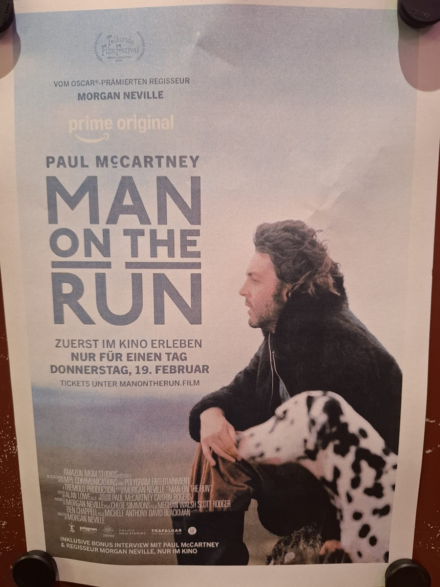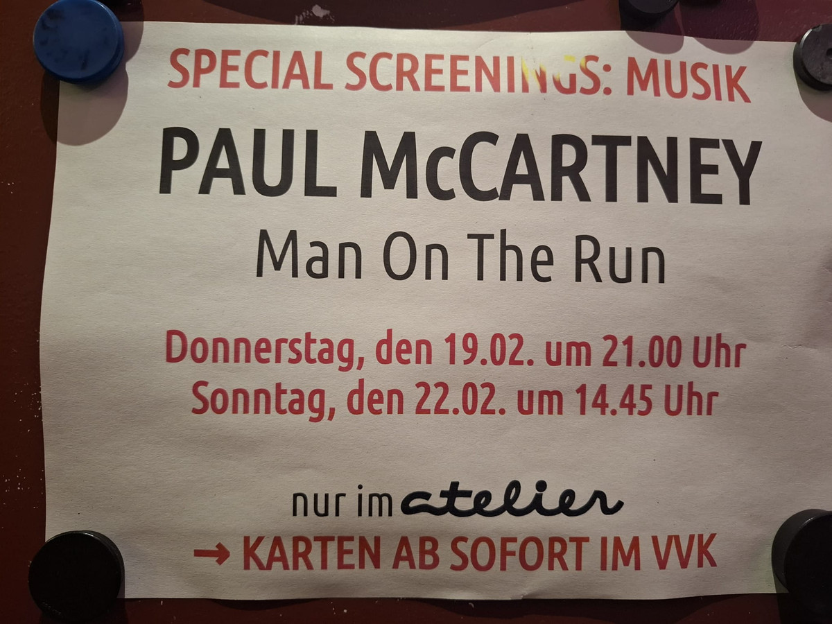 Nur am 19. Februar wurde in ausgewählten Kinos der Film “Man on the run” gezeigt. Dieser Film über Paul McCartney und seine Band “Wings” wurde um 21 Uhr in Düsseldorf gezeigt.