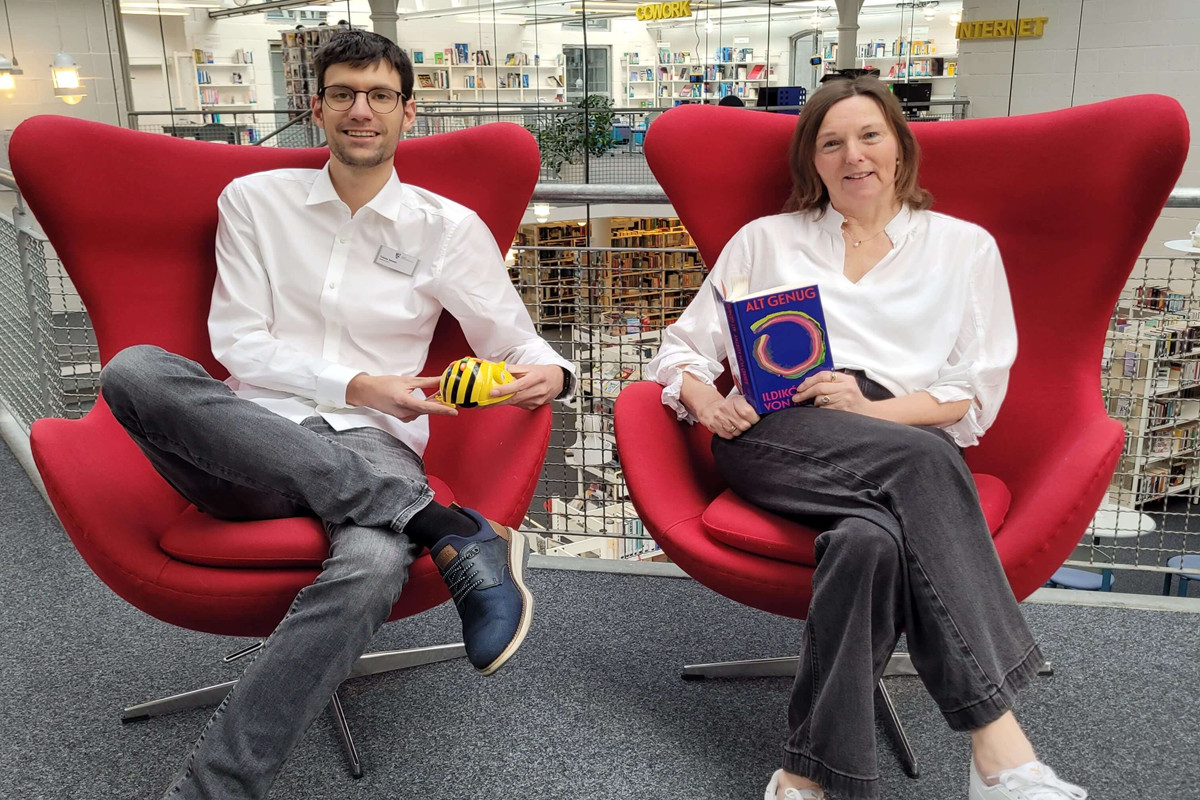 Aktuell hat die Stadtbücherei noch eine „Doppelspitze“. Leiterin Kathrin Ludwig ist noch da und arbeitet derzeit ihren Nachfolger Tobias Jatzen ein. Denn: Ende April wird Kathrin Ludwig nach 37 Jahren und vier Monaten in der Stadtbücherei in den Ruhestand gehen.
