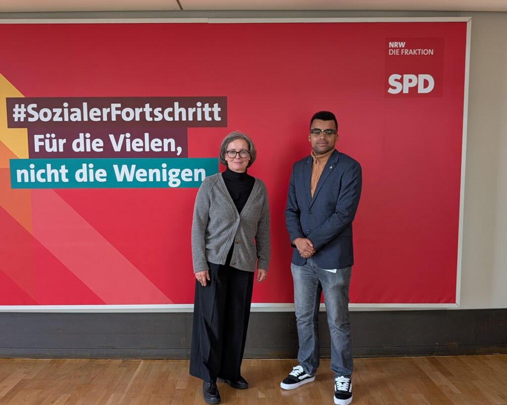 Auch über die Kom­mu­nal­po­li­tik hin­aus durf­te ich wich­ti­ge Erfah­run­gen sam­meln. Auf Lan­des­ebe­ne bekam ich durch die Büro­lei­te­rin Clau­dia der Land­tags­ab­ge­ord­ne­ten Caro­lin Kirsch die Mög­lich­keit, ein ein­wö­chi­ges Prak­ti­kum im nord­rhein west­fä­li­schen Land­tag zu machen. Dort konn­te ich die Oppo­si­ti­ons­ar­beit der SPD Land­tags­frak­ti­on mit­er­le­ben und an Sit­zun­gen des Haus­halts und Finanz­aus­schus­ses sowie des Wis­sen­schafts­aus­schus­ses teil­neh­men.