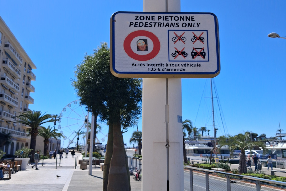 Zu schnell kann ich Frankreich richtig teuer werden. Und manchmal steht der Preis direkt auf dem Verbotsschild. Mit dem Fahrrad über den Bürgersteig? Da ist man mit 135€ dabei. Offenbar hilft und funktioniert das, denn wir haben dort nie jemanden fahren sehen.