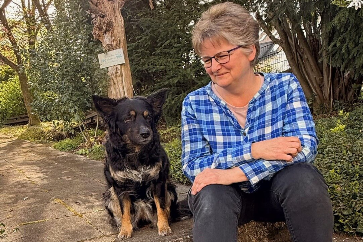 Foto: Andrea Han­sen und ihre The­ra­pie-Begleit­hün­din „Nai­ra“ bie­ten mitt­wochs den Kurs „Acht­sam in den Fei­er­abend“ im „Haus der Begeg­nung“ an. Foto: Stadt Wer­mels­kir­chen / Kath­rin Kel­ler­mann