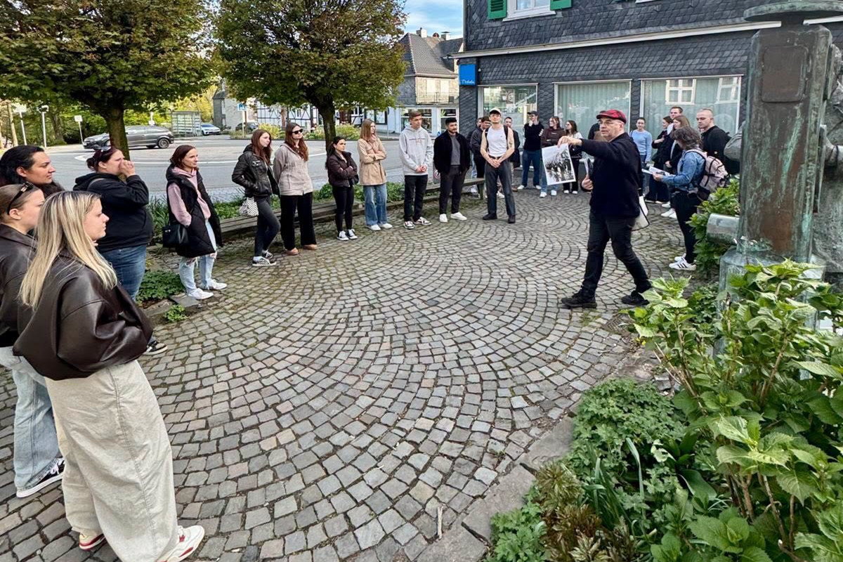 Ausbildung mal anders: Mit Stadtführer und Lokalhistoriker Armin Himmelrath waren Auszubildende der Stadtverwaltung in der Innenstadt unterwegs. Dort tauchten sie an verschiedenen Stationen in die Geschichte Wermelskirchens ein.