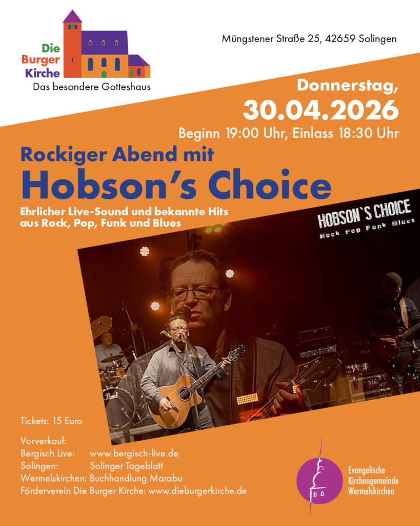 Der Sound von Hobson’s Choice klingt nach Lebensfreude pur. Die sechsköpfige Formation aus dem Raum Düsseldorf begeistert seit vielen Jahren ihr Publikum – mal kraftvoll verstärkt, mal unplugged und immer mit spürbarer Begeisterung für Musik.