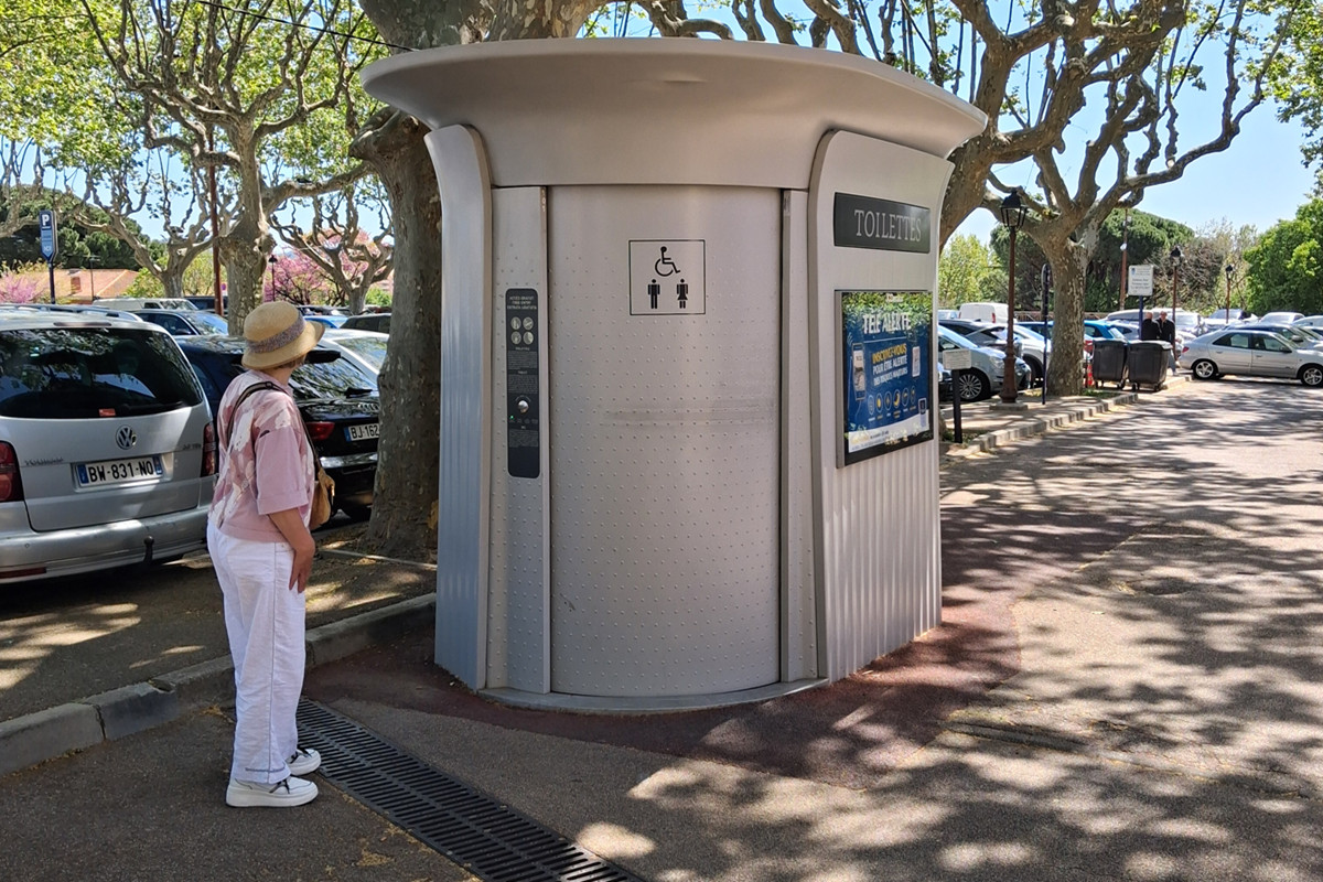 Da staunten wir im Urlaub über ein ganz tolles Klohäuschen. Der Zugang erfolgt mit einem Ampelsystem. Grün = frei und Rot = besetzt bzw. noch im Reinigungsmodus. Nach jeder Benutzung wird dieses Häuschen, einschließlich Boden, automatisch gereinigt. Tolle Sache und KOSTENLOS!